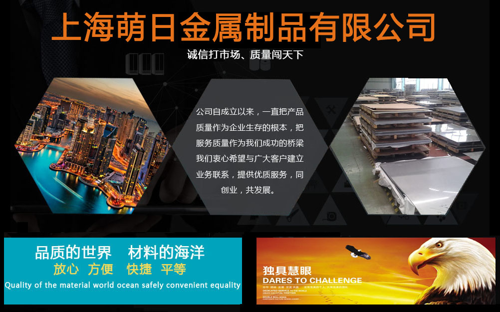 上海萌日金屬制品有限公司一直致力于為國內(nèi)各大中型國有企業(yè),外資企業(yè),民營獨(dú)資企業(yè),模具制造企業(yè),機(jī)械加工企業(yè),石油化工企業(yè)及器械企業(yè)等供應(yīng)各種特種鋼材,進(jìn)口/國產(chǎn)鋁合金,不銹鋼,合金結(jié)構(gòu)鋼,42CrMo鋼板,35CrMo鋼板,40Cr鋼板,合金圓鋼,中厚板,鍛件,法蘭,鋼帶,軸承鋼,易切鋼,不銹圓鋼,合金管,矩形鋁管,無縫鋁管,鋁管,工業(yè)鋁管進(jìn)口及國產(chǎn)方胚/鋼錠/鋁錠,應(yīng)用于機(jī)械,機(jī)電,造船,工程,煤礦,紡織,電力,鍋爐, 汽車工業(yè)等各個領(lǐng)域。我公司可以根據(jù)客戶對特殊材料的要求進(jìn)行材料和產(chǎn)品的定制,可按ISO,ANSI,JIS,DIN,GB等標(biāo)準(zhǔn)定制,我們將本著"誠實(shí)守信,合作共贏,長期合作"的理念與新老客戶一起進(jìn)步發(fā)展。